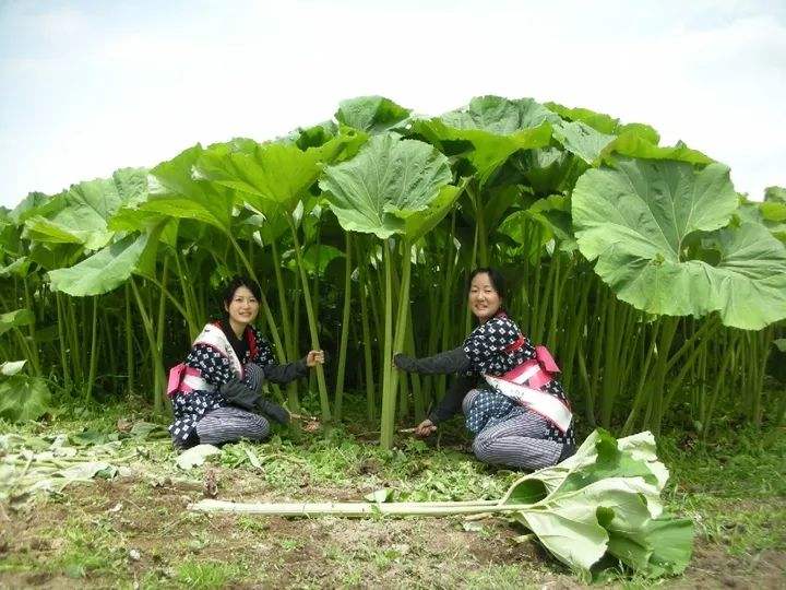 蜂斗菜在日本确实非常流行种植的,日本的朋友们会叫秋田蕗。它不仅能吃而且还具有很高的中药的价值,有些地区会专门种植这种蔬菜。峰斗菜长得特别奇怪,它的叶柄特别长,叶片肥肥大大的,而且他开起花来是一团一团的像小绣球一样的。