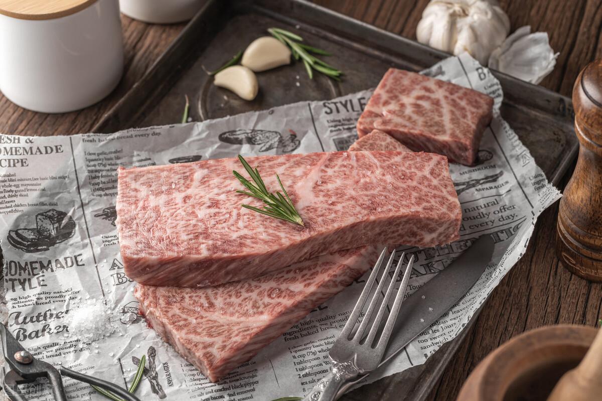 神户和黄牛每年只生产3000头左右。这是一种很好吃的牛肉。它有独特的脂肪条纹和味道。神户牛排和牛扒在烘焙时需要格外小心,以避免过热。一块170克的牛排要144美元。