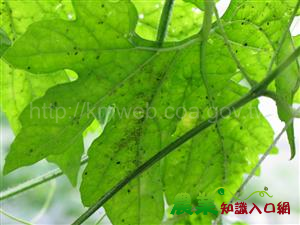 苦瓜生育期间如果受到瓜螟危害而没有加以防制,数量将快速增加,结果期间之果实及老叶也受到为害(附图)。