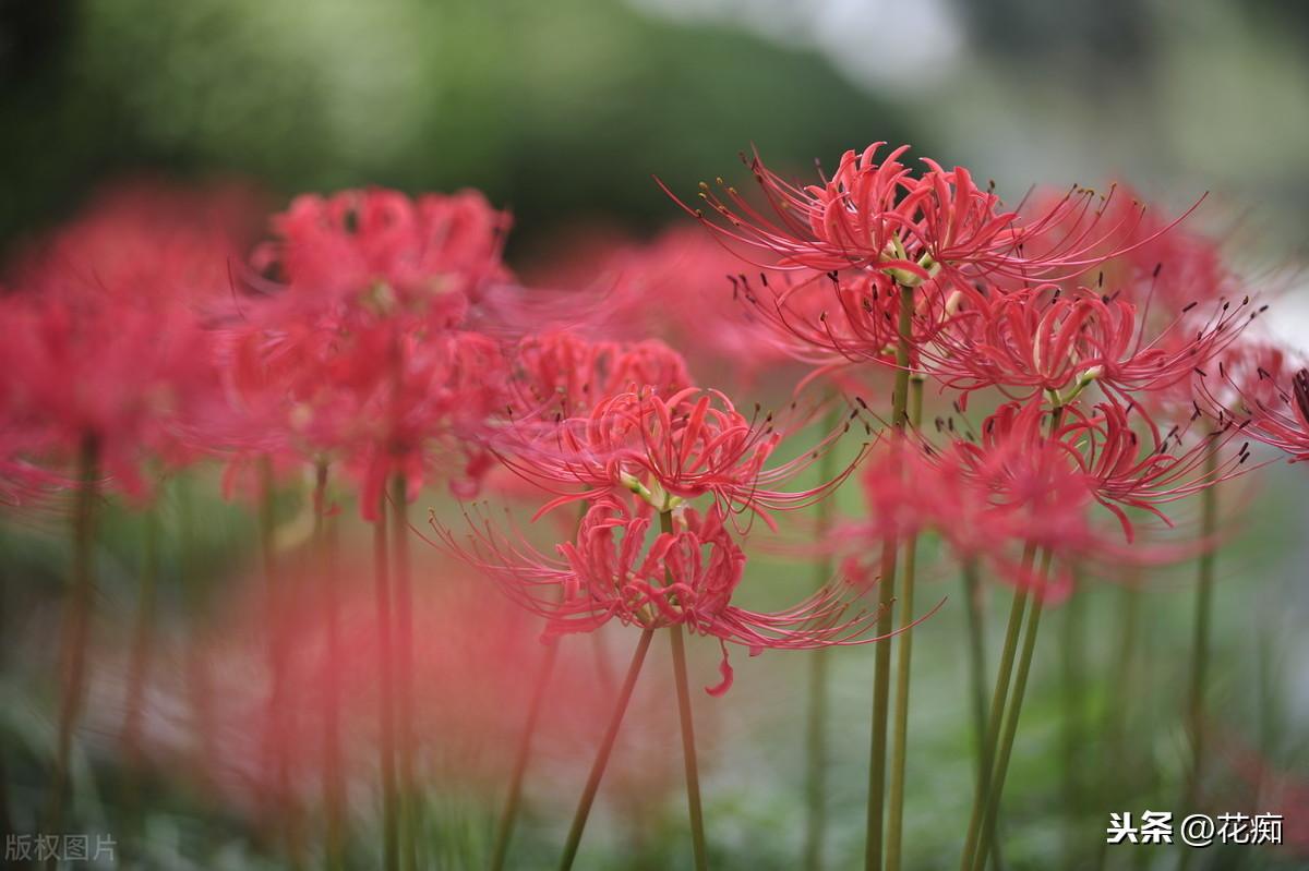 彼岸花,是一种石蒜科球根花卉,每年春天长叶长球,夏天叶片枯萎进入休眠期,为秋天开花做充足的准备,到8-9月份之后,在没有叶片的情况下,就会开出来特别漂亮的花朵,高挑的花箭看起来非常的特别,单朵花开可持续1周左右。