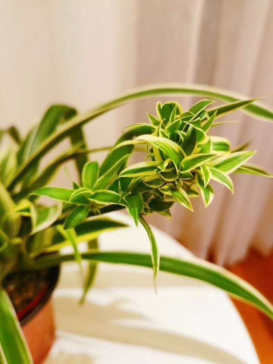 吊兰的叶子比较茂盛,在家里面养一盆释放氧气的效果特别好,而且吊兰很容易爆盆,而且养在家里也是非常合适的,吊兰的繁殖能力也比较强,掐下一个“小吊兰”,放进水里或者是种到土壤里面都能够成活。