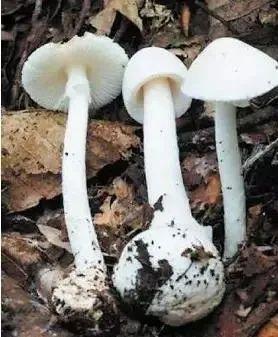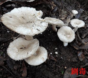 菌盖初期半球形,后平展中部下凹呈漏斗状,灰白色、浅灰色至煤灰黑色,边缘色浅而内卷,无沟纹;菌肉白色,较厚,近柄处有分叉现象,受伤处变红而不变黑,无气味。此种剧毒,发病初期为恶心、呕吐、腹痛,伴有酱油色尿,最终导致肾功能衰竭、呼吸衰竭,死亡率达70%。
