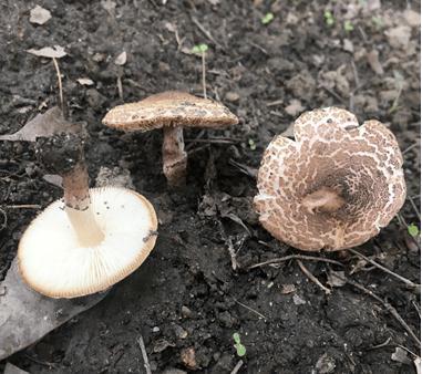 子实体小至中等,菌盖5-8cm,纯白色,有时中部呈米黄色,边缘有时有辐射状裂纹,表面具有细绒毛状。菌柄白色,有时被白色细小鳞片,近顶部有菌环。