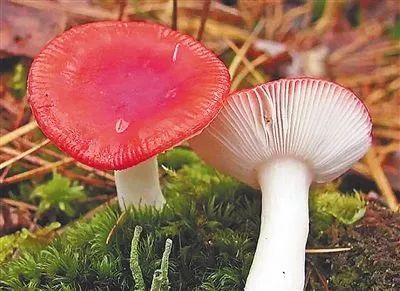外观与红菇相近,但其子实体一般较小。菌盖5-9厘米,扁半球形,后变平展,老时下凹,粘,光滑,浅粉红至珊瑚红色,边缘色较淡。食后主要引起胃肠炎症。如剧烈恶心、呕吐、腹痛、腹泻。