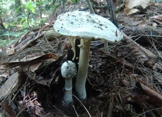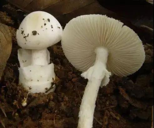 子实体大,白色。菌盖直径5-25厘米,呈半球形或扁半球形,后期近平展,中部稍凸起,张开的大伞足有成人手掌的两倍,通体白色,伞盖上点缀着星星点点的褐色突起。该菇所含有的毒素主要引起胃肠型症状,但也有些具有类似白毒伞的毒性,对肝等脏器和神经系统造成损害,进食量大时也会致命。