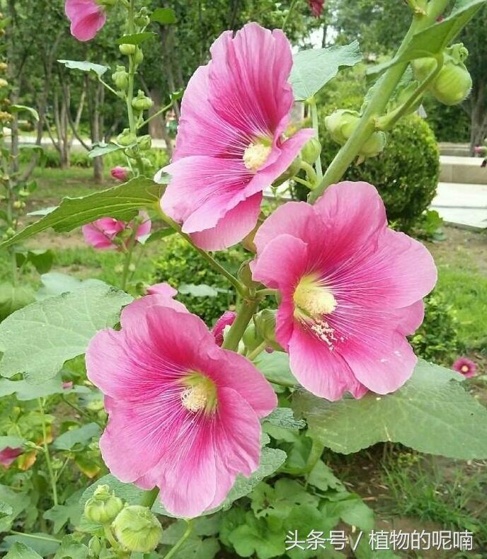 蜀葵,也叫一丈红,花色丰富艳丽,花型有单瓣、还有多瓣,十分好看,种在庭院、花径都美极了。它花期长花量大,适合秋天种植,第二年就会开花。