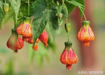 金铃花,也叫灯笼花,是锦葵科的多少年花卉植物。桔黄色的花朵,曲线柔美呈钟形,花瓣上有红艳精致的纹脉,形似风铃,色彩鲜艳,迎风摇曳,十分美丽可爱,花期5-10月,适合秋天种植。