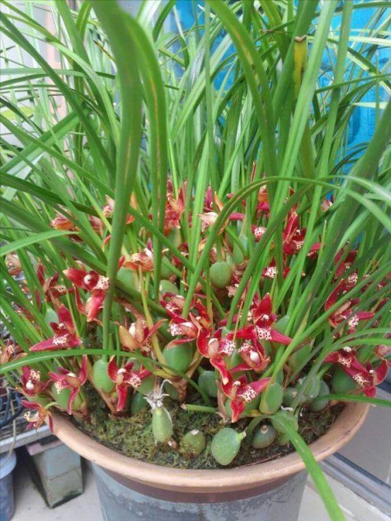 腋唇兰有球形的茎,营养都储存在里面,回家后我们要放到散射光凉爽的环境,这样做为了花期更长一些,让我们多享受甜蜜的花香。平时一周给浇一次水,周边温度特别高,可以给喷水增加湿度降温。