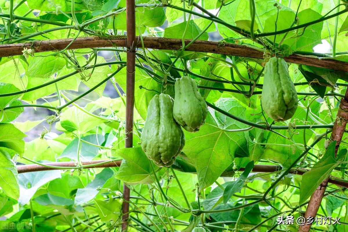 佛手瓜是多年生的藤蔓植物,一次种植,多年采摘。每年三月左右出苗,从五月左右开始结果,一直结到秋天。在我们这里的农村,基本上家家户户都会种植。不过并不是为了吃它的苗而种植,基本上都是为了摘佛手瓜。佛手瓜的产量奇高,口感不错,并且可以极其粗放型的管理。在出苗的时候,一棵佛手瓜倒上一桶农家肥,就可以无限采摘直到深秋。