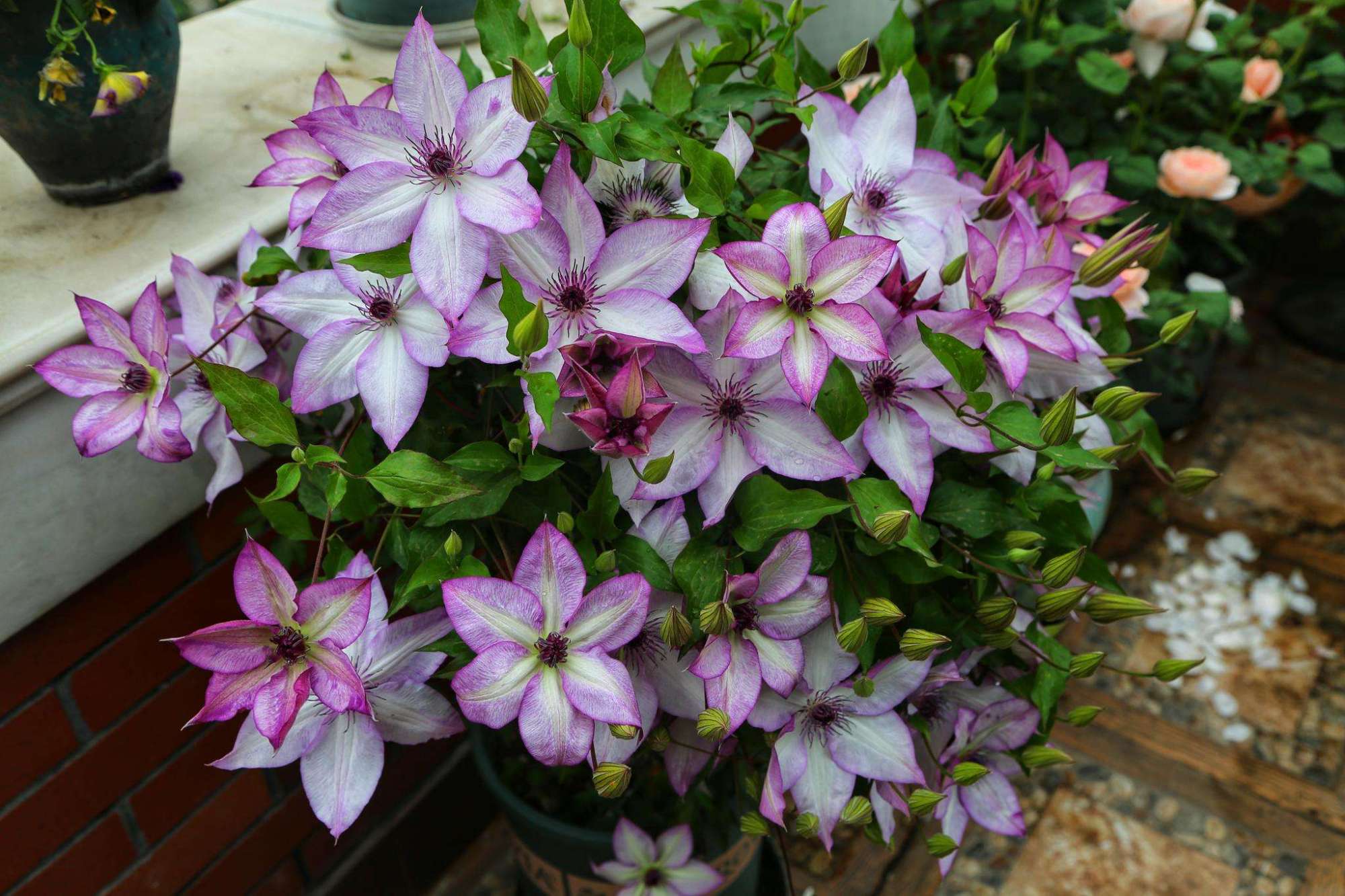 铁线莲的适应性很强,全国各地都能看到它的身影,部分品种还有较强的耐寒性,就是在北方地区,也能生长开花,可以说只要选择好品种,从南到北都能生长,不管是阳台、露台盆栽还是庭院地栽,养护得当,都能开得美美的,但是若是养不好,铁线莲就很难开花,就是开花也会少而小,花色也会淡一些,很多人称铁线莲很美,一养就“废”这到底是为什么呢?其实就是养护方法没有做到位,若是你家的铁线莲也是如此,不妨学会这“5个小窍门”,让它开花一个赛一个的美,养上几年,一棵就开上百朵。