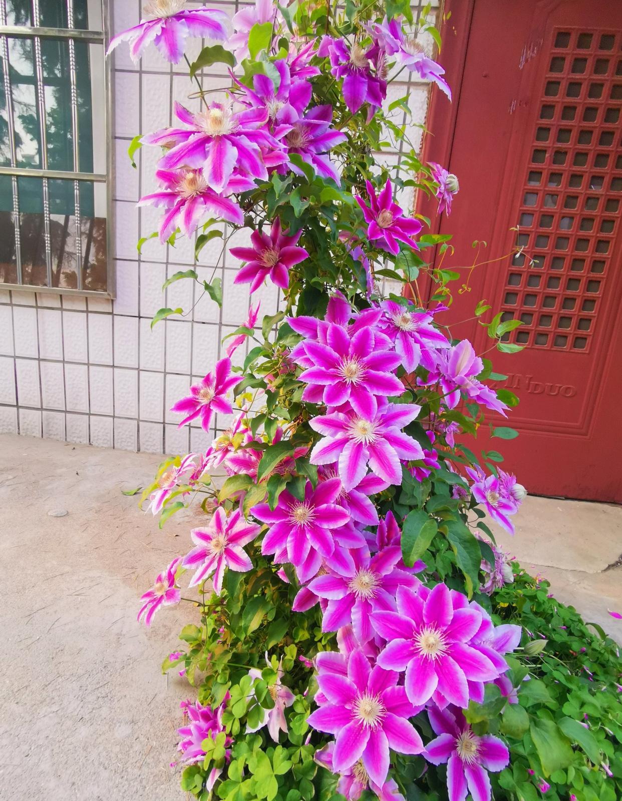 铁线莲的品种有很多,新手可以从最常见的经典品种开始养起,它们都能经的岁月打磨,养殖范围广,经久不衰,养起来省心省力一些,比如说鲁佩尔博士,又名经曲,是一种非常优秀的铁线莲,它属于旱花勤花的经典品种,在两广地区,三月份就能长花苞,四五月份就能盛开,可以持续开到6月份,花朵大而娇艳,一朵花的直径可以达到15厘米左右,而且它生长快,一棵小苗,两三年就可以成型,盛开之后,极为震撼,层层叠叠的花瓣,清新亮丽,层层叠叠的花朵,能开满一面墙。