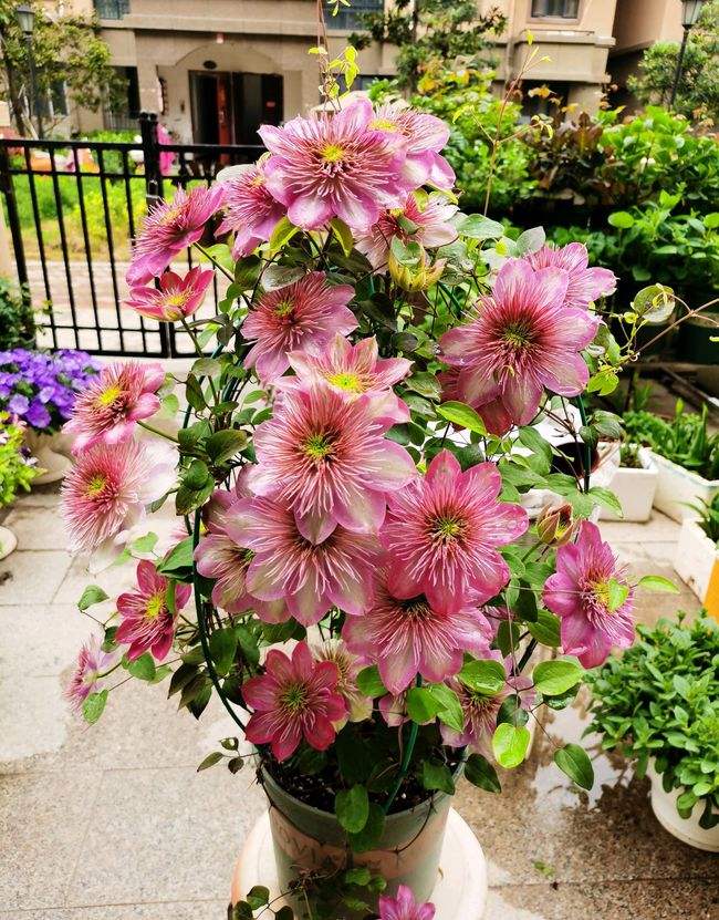 铁线莲的根系特别的发达,吸收能力强,对水分的需求很高,但是它也不耐潮湿,积水会烂根,所以我们养铁线莲,浇水是关键,浇水太多,会造成铁线莲黑腐烂根,但是水分不足,则会让它生长慢,不水灵,特别是夏天高温时期,土壤干湿循环快一些,更利于它的生长,所以养铁线莲,要保证有良好的通风,浇水勤一些,通风好一些,才能既满足它的生长,又不易黑腐烂根,让它安全度夏,健壮生长。