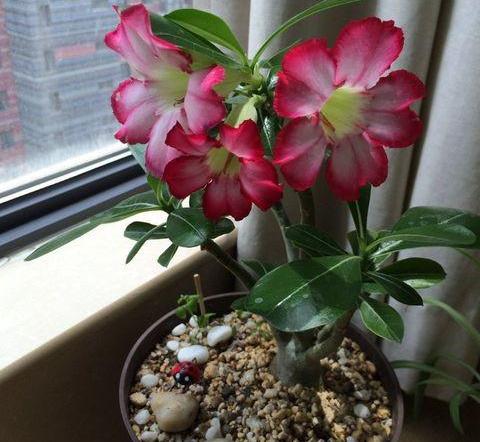 沙漠玫瑰其实并不难养,按照这几种方法你把该做的做好了,它就能够不断的长根,根系长满盆,新芽不断长,不断的从新芽上长出花苞来开花,轻轻松松简简单单。
