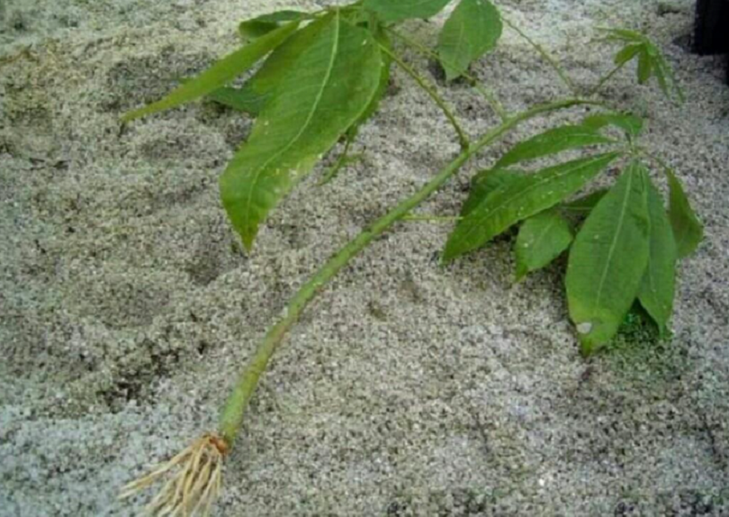 这样去扦插的话,20天到30天的时间他就能够生根,只要根系长出来以后,逐渐的它的叶片和茎杆连接的地方就会长新芽,如果你扦插的枝条是带着顶芽的,它的顶芽就会持续的生长,小芽长到一定高度以后,我们移栽到新的花盆当中,再去正常的施肥,多见光,它就能够快速的生长。