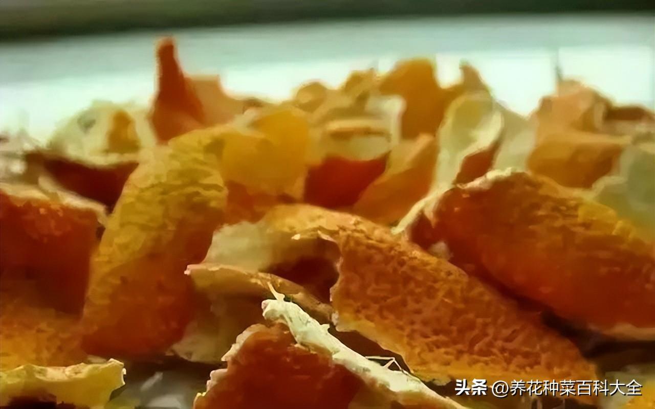 在正处于发酵阶段的肥水中可以加入一些桔子皮(新鲜或风干的均可),让桔子皮和肥料一同发酵。桔子皮里含有大量香精油,我们可以利用来减少液肥臭味,而且桔子皮发酵后也是一种很好的育花肥料。