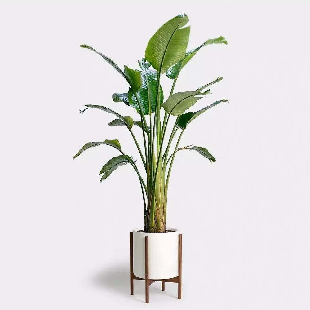 天堂鸟的叶片非常大,搭配一个高脚的花盆,看上去就非常美观,整体看起来也非常气派,非常有格调,看着也有热带的风情,这就是大部分人选择在室内养天堂鸟的原因。