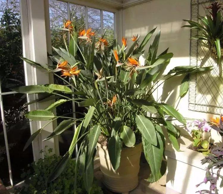如果你是生活在偏远地区,常年没有霜冻,养在阳台或窗台边,每天有充足的光照,盆栽养护的天堂鸟也要养5~7年,才有机会孕育花朵。