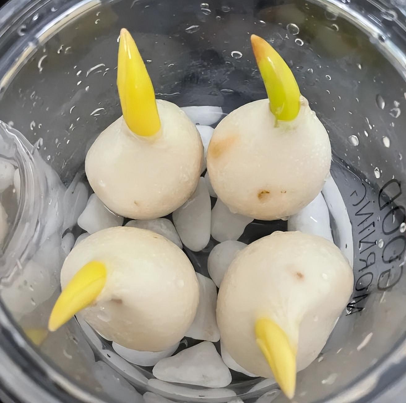1. 选择健康球茎。2. 冲洗干净球茎。3. 选择透明容器。4. 注入适量水,放入球茎。