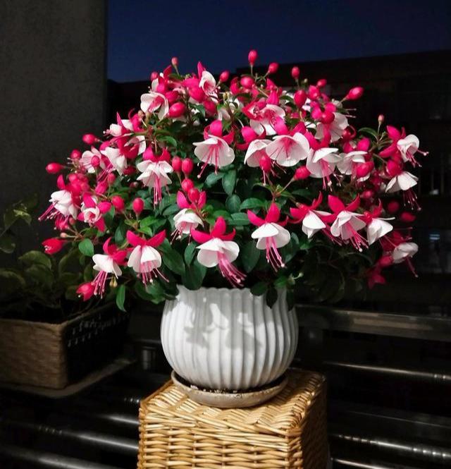 在温度冷凉的时候多晒晒太阳,满盆都是花,能开成小花球,倒挂金钟的花色品种非常多,总有一款喜你喜欢,看着花朵随风飘舞,艳丽多姿,心情很舒畅哦。