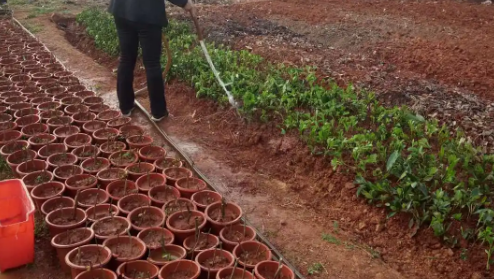 将插穗底部剪成斜口状,沾取生根粉,促使冬青能尽快生根成活。随后剪口向下插入已经准备好的土壤中,随后浇透水,使得插穗与土壤能紧密的结合在一起。