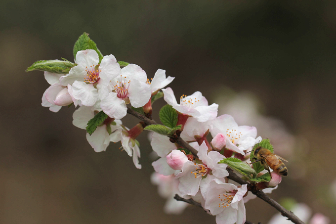 花芽数量多,花的第一片叶子开放,白色至淡粉色,萼片红色,座果率高。花期4月上旬,果实发育期45-55天,5月下旬至6月上旬成熟。核果圆形或长方形,鲜红色或乳白色,酸甜可口,是早熟水果之一。毛樱桃生于山坡森林、林缘、灌丛或草地,海拔100-3200m。