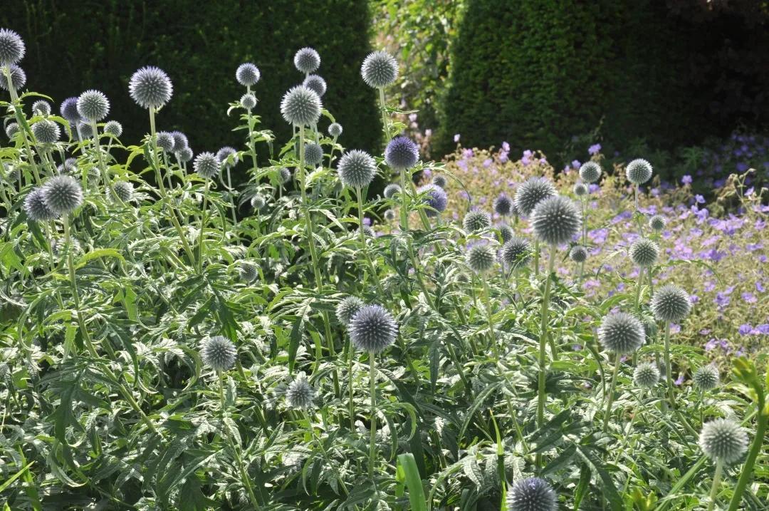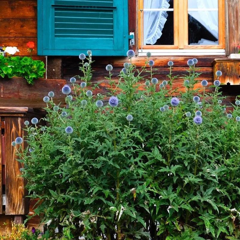 蓝刺头的应用十分广泛,多数是用在庭院打造和花境搭配中,大空间的阳台也是非常适合的。