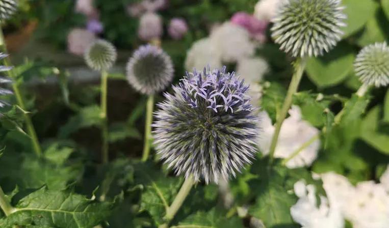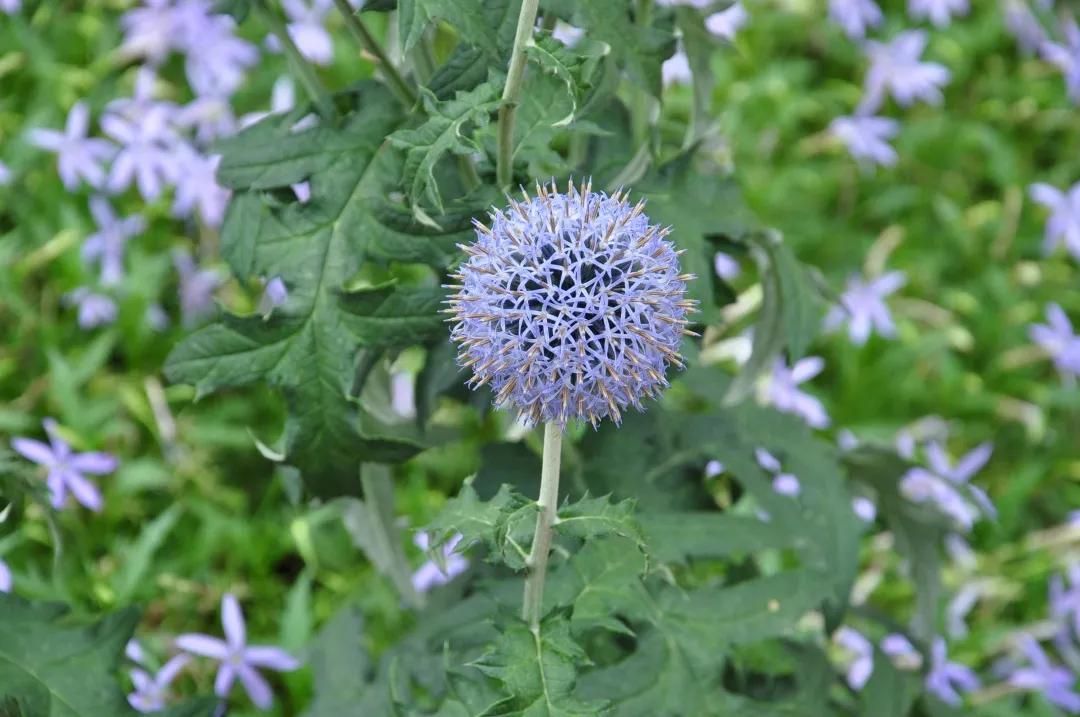蓝刺头也叫蓝星球,属于菊科多年生的草本植物。它对环境的适应能力很强,耐寒耐干旱,还耐瘠薄,粗放管理就可以长得很好,是一种良好的夏花型宿根花卉。