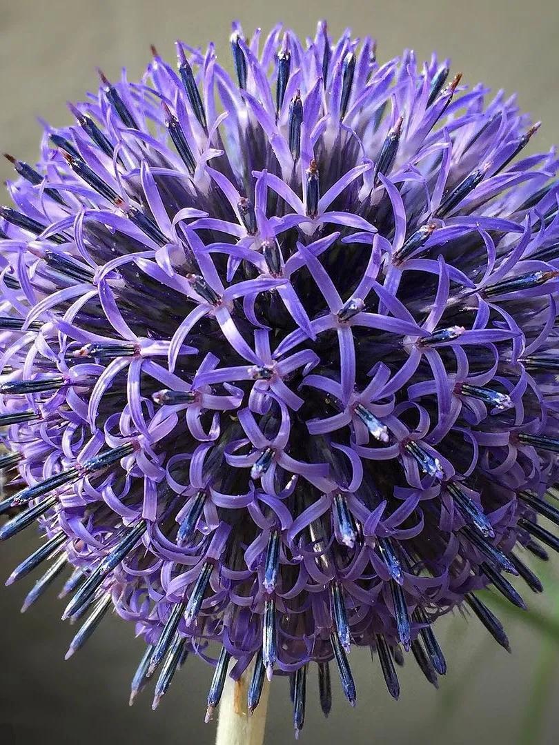 蓝刺头的整个开花过程也十分有趣,能让人感受到一种潜移默化的喜悦。从上到下,一层一层地开出蓝紫色的小花,雀跃又蓬勃。
