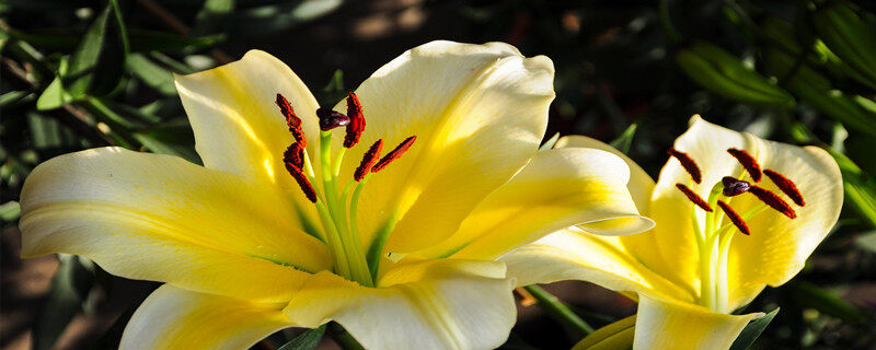 1、光照,百合花喜光,日常养护要让百合多晒太阳,光照充足有利于植株茎叶紧凑,不徒长、不倒伏,光照不足的话,百合花的花期就会延后,严重的甚至不开花,徒长倒伏白养一年。