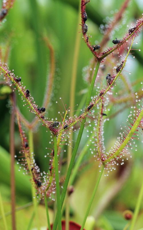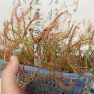 叉叶茅膏菜是大型的茅膏菜品种,叶长最长可达50厘米,叶柄极长,叶片分叉,成株外形十分壮观。小型食虫植物,叶片上长有腺毛,能分泌粘液,外形象是挂满了露珠,晶莹剔透,能象粘纸一样把昆虫粘住,并消化吸收。