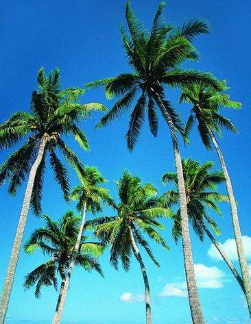 椰子树是棕榈科椰属的一种大型植物,椰子是椰树的果实,是一种在热带地区很普遍的果实。椰子树的普及也与其果实椰子可以在海中随风浪漂流上千公里后生殖到离母树非常远的地方有关。椰子树是常绿乔木,产于热带。树干高约15~30米,单项树冠。叶羽状全裂,长4~6米,裂片多数,革质,呈线状披针形,长65~100厘米,宽3~4厘米先端渐尖;叶柄粗壮,长超过1米。