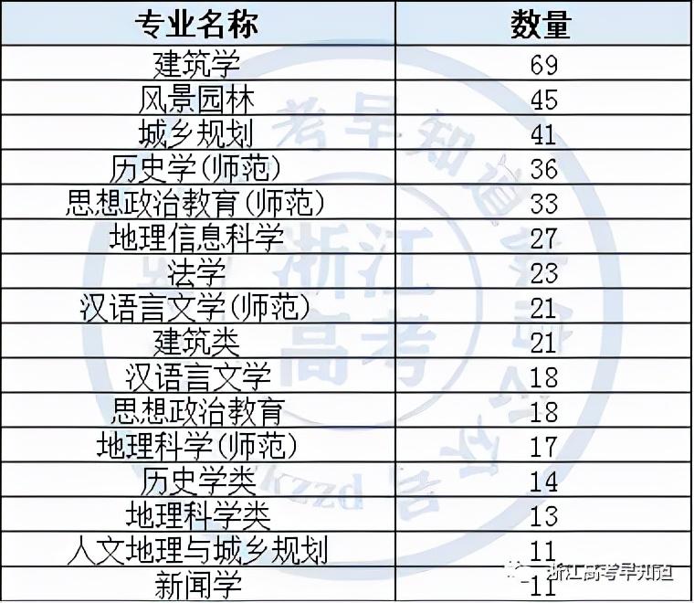 注:次表格仅统计数量超过10的专业