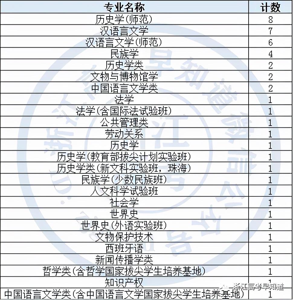 注:次表格仅统计数量超过2的专业