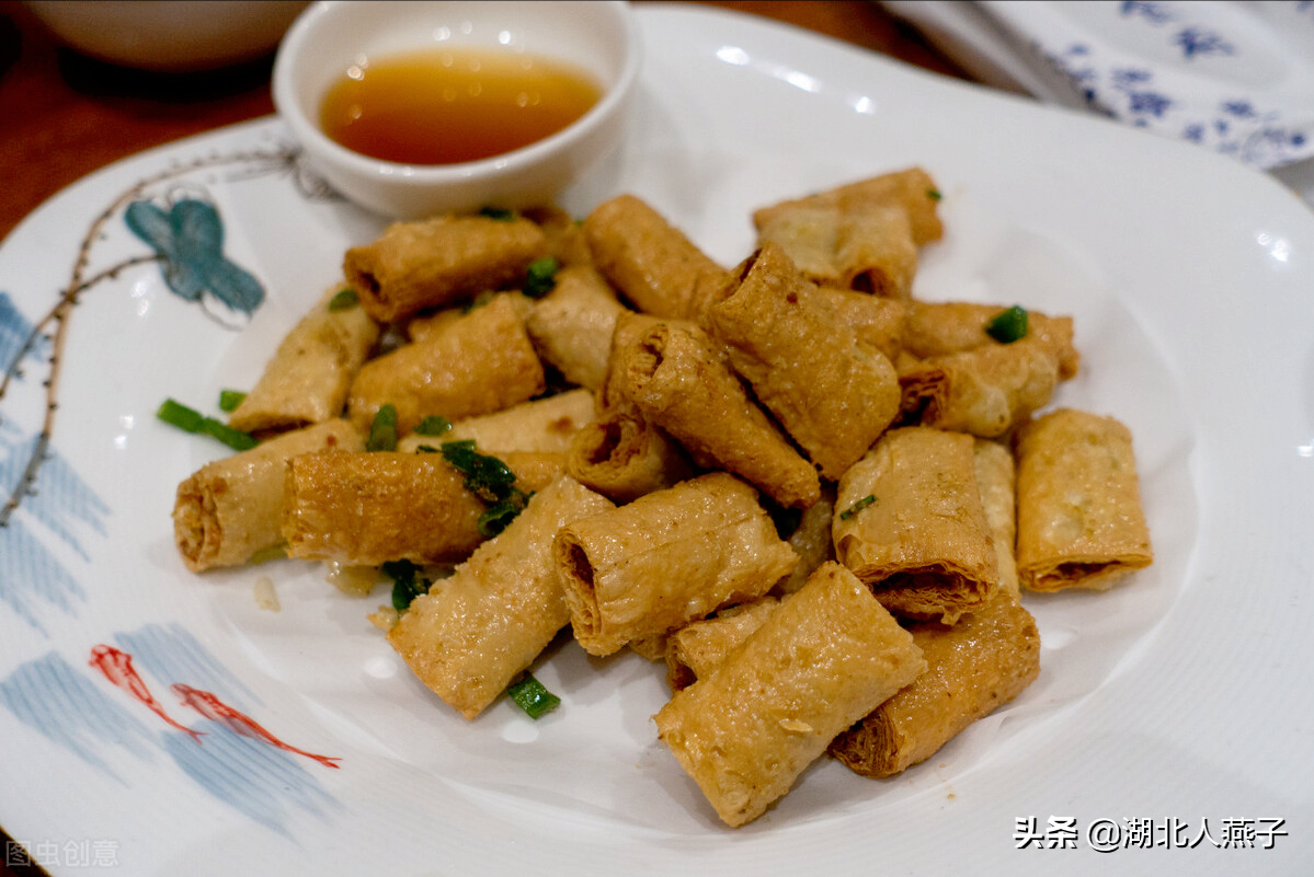 干炸响铃的形状像小春卷一样,颜色金黄,口感:酥脆香咸可口,非常好吃。是用猪里脊肉剁碎后,加入调味料调制后,再用干豆油皮包起来,包成像春卷一样,放入油锅里炸至金黄后捞出控油装盘即可。干炸响铃受到了很多小孩子和大人的喜爱,也是很多杭州本地人都爱吃的美食。